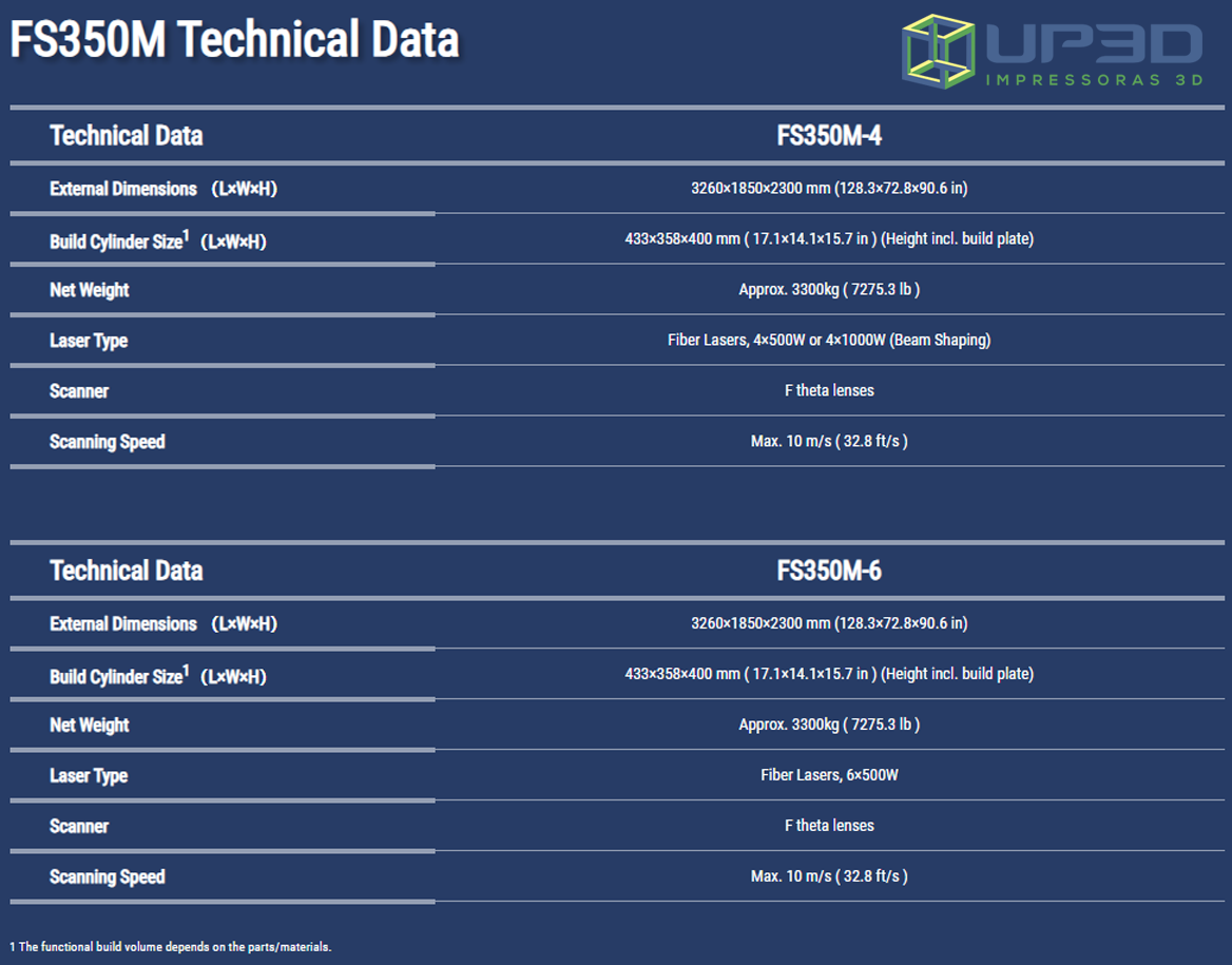 Com um cilindro de construção expandido de 433×358×400 mm, a FS350M é capaz de produzir peças metálicas de grandes dimensões a partir de uma ampla gama de materiais em pó. A FS350M é ideal para a produção em série de médio a alto volume de peças metálicas para diversos setores, como moldes, ferramentas, automotivo e aeroespacial. A capacidade atual de processamento de materiais em pó inclui alumínio, titânio, aços maraging e aços inoxidáveis especiais.