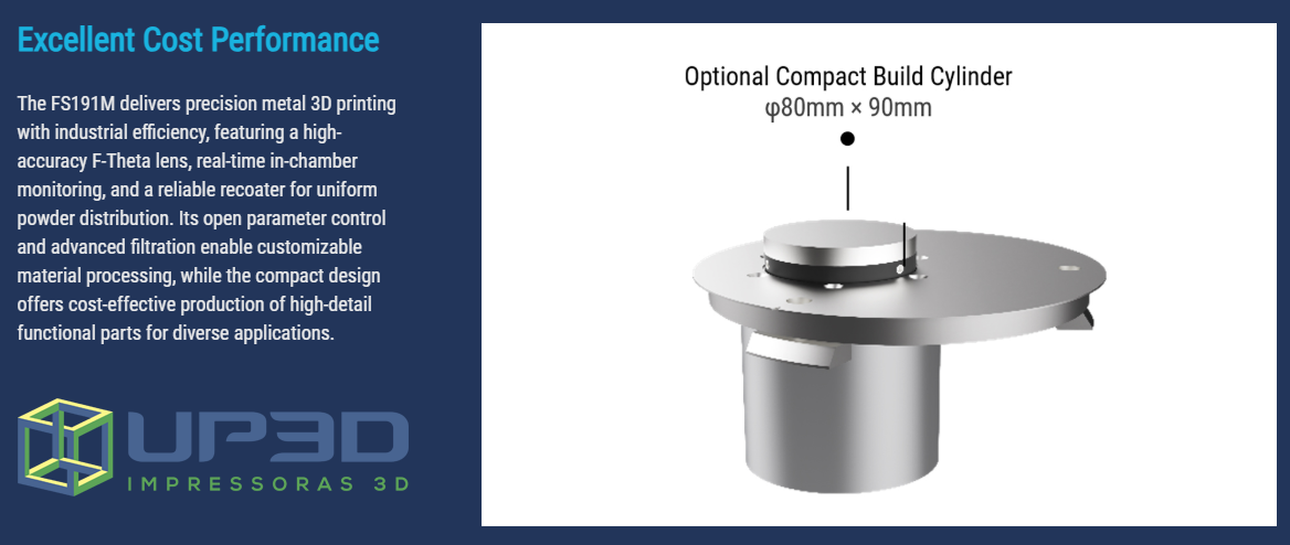 O equipamento de manufatura aditiva do fabricante Farsoon, modelo FS191M é um sistema compacto de fusão em leito de pó metálico (PBF) de última geração, projetado para oferecer produtividade incomparável, excelente custo-benefício e operação otimizada para aplicações industriais. Combinando tecnologia de ponta com design centrado no usuário, o FS191M capacita os fabricantes a transitarem perfeitamente da prototipagem para a produção em baixo volume, com precisão e eficiência.